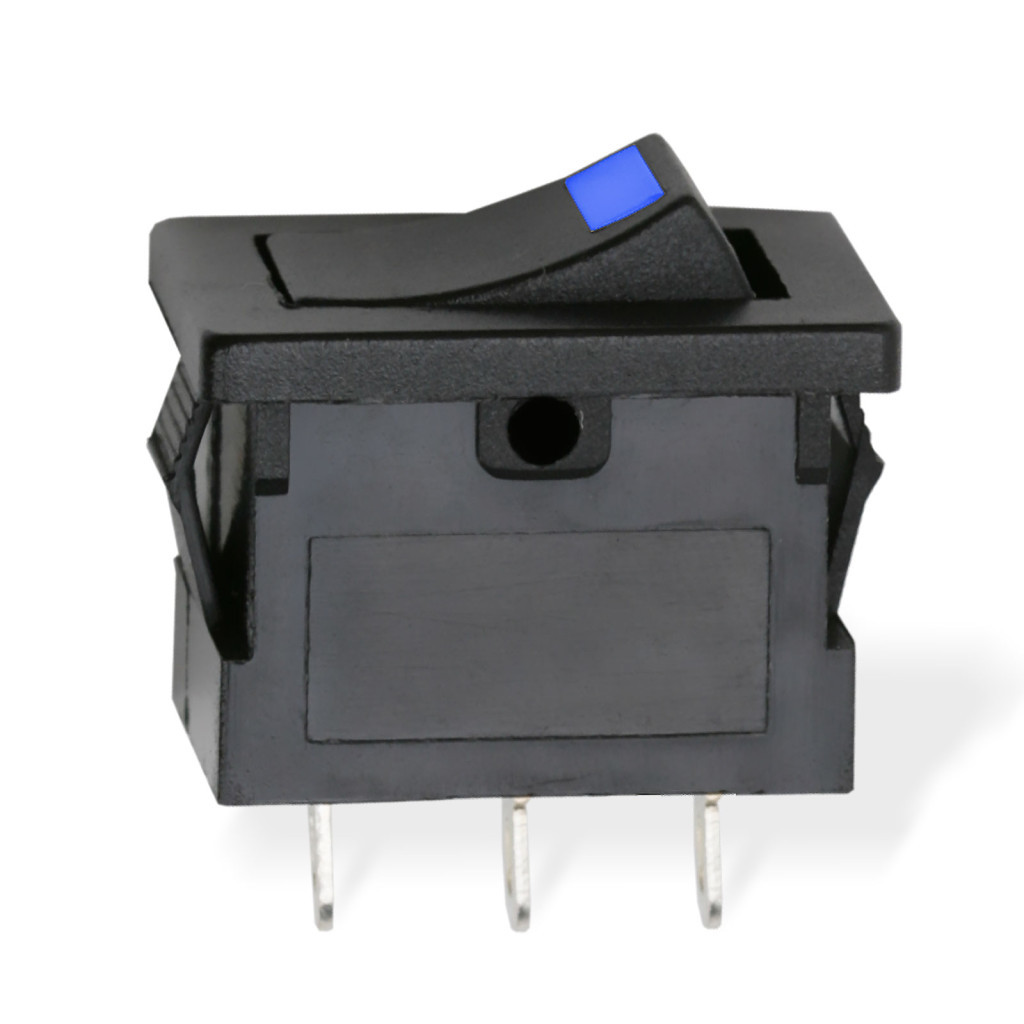 Beépíthető fekete billenőkapcsoló, amely kék LED fénnyel jelzi a bekapcsolt állapot, így távolról is könnyedén ellenőrizhető a státusz. Széles körben alkalmazható, elektromos berendezések, járművek kezelőfelületén.