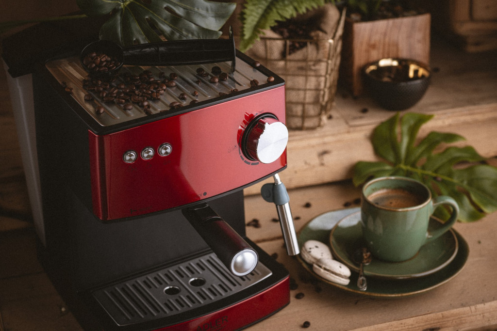 Adler AD4404R Kávéfőző, 15 Bar, 850W, Bordó