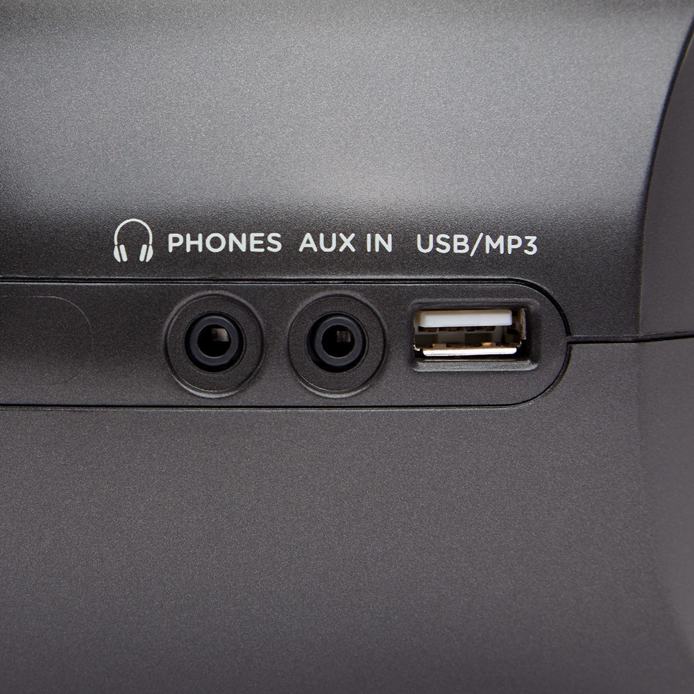 • Csatlakozások: AUX bemenet (3,5 mm), sztereó fejhallgató jack (3,5 mm)