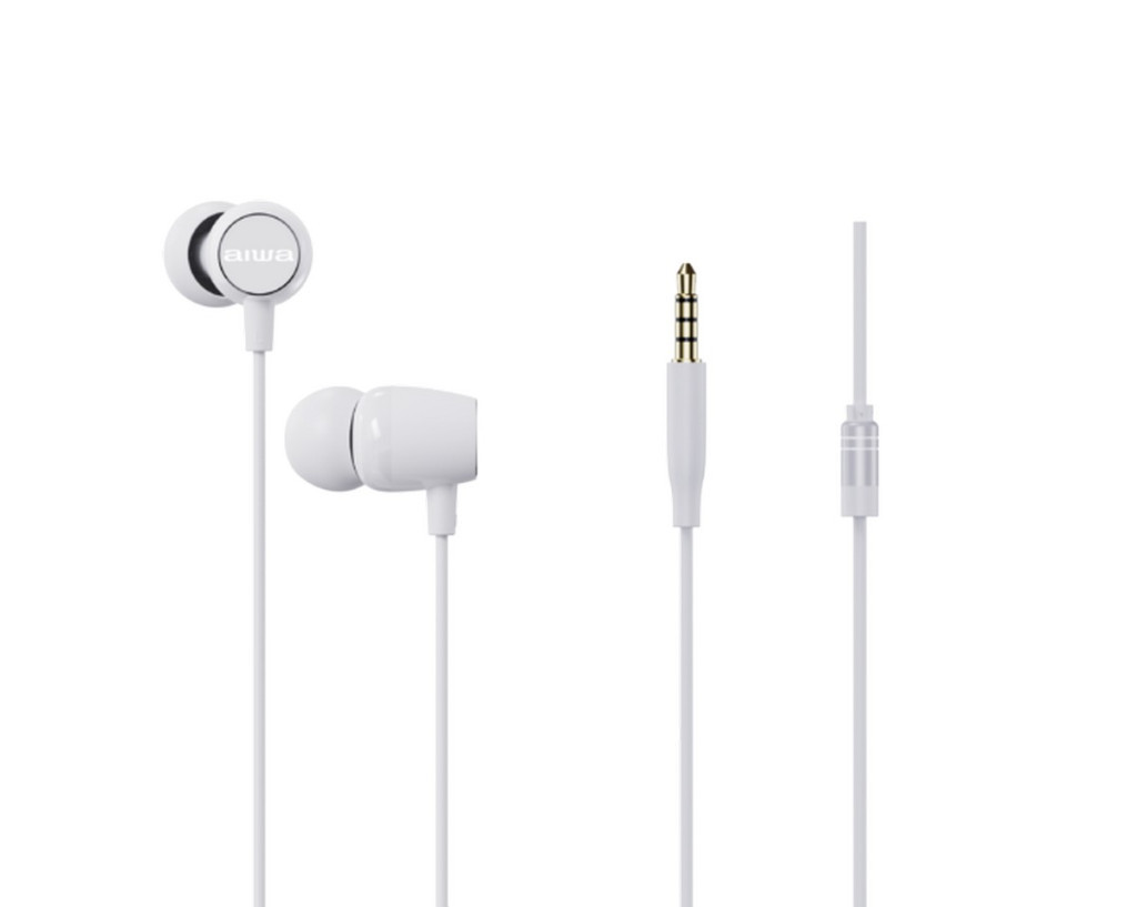 Aiwa ESTM-20WT dinamikus vezetékes fülhallgató mély basszussal és kristálytiszta hangzással, fehér színben
