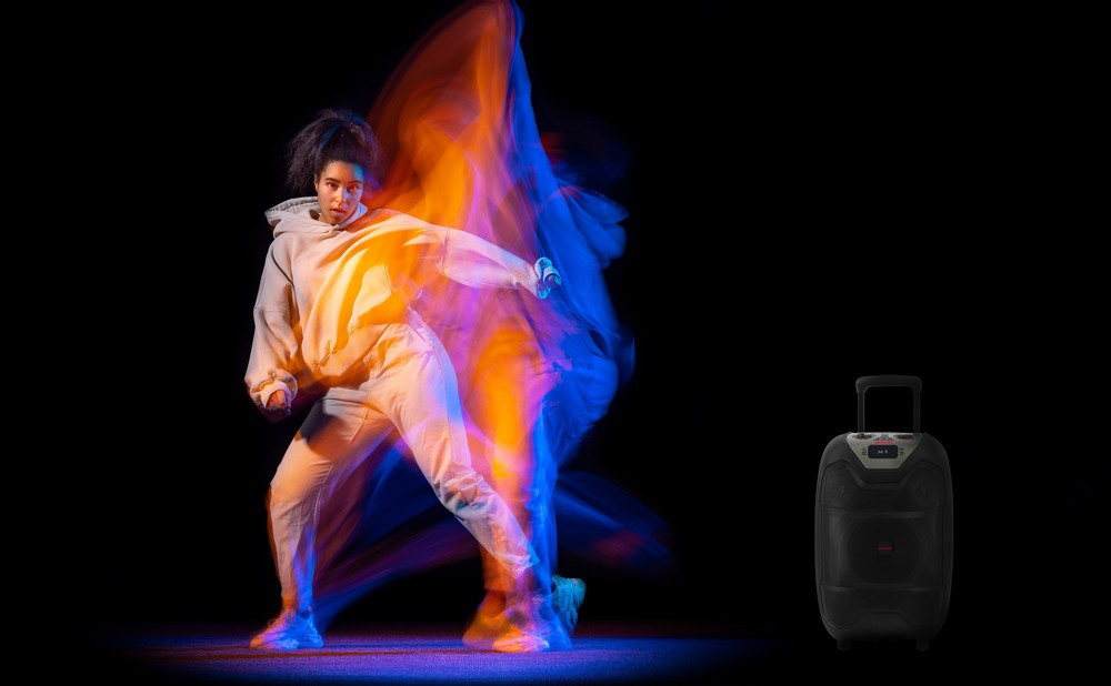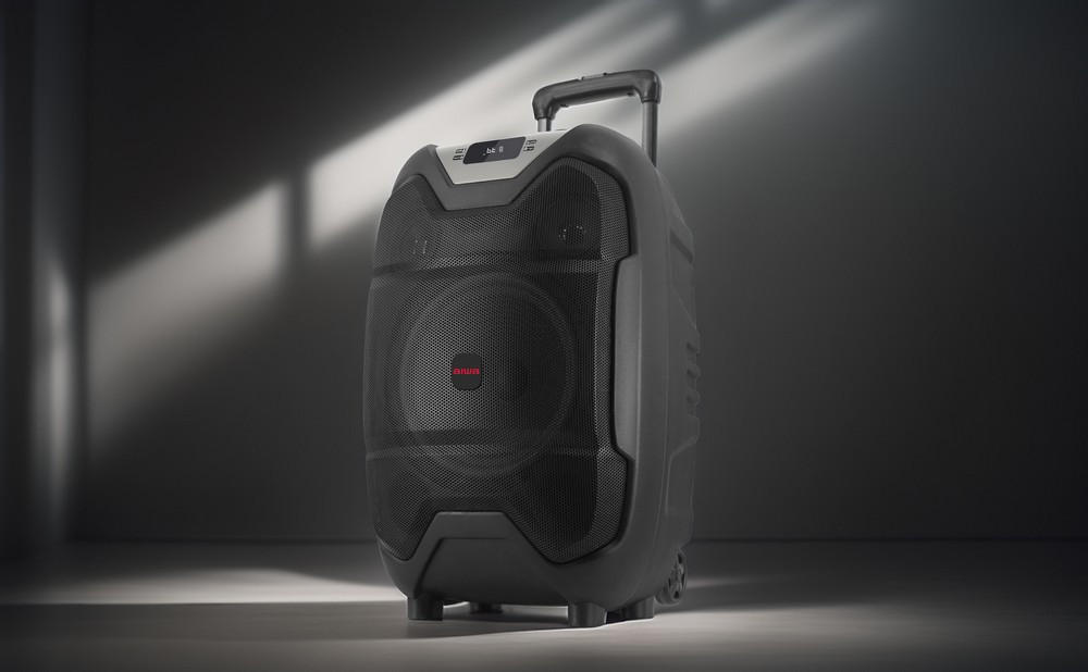 A 10 hüvelykes mélynyomó és a 2 x 3 hüvelykes hangszórók gondoskodnak a dinamikus hangzásról, míg a gyors BASS kapcsoló lenyűgöző mélyhangokat biztosít. A beépített akkumulátor akár 3-5 órás lejátszást tesz lehetővé, így még áramforrás nélkül is folytatódhat a buli. A praktikus teleszkópos fogantyú és kerekek révén pedig könnyedén szállíthatod bárhová.