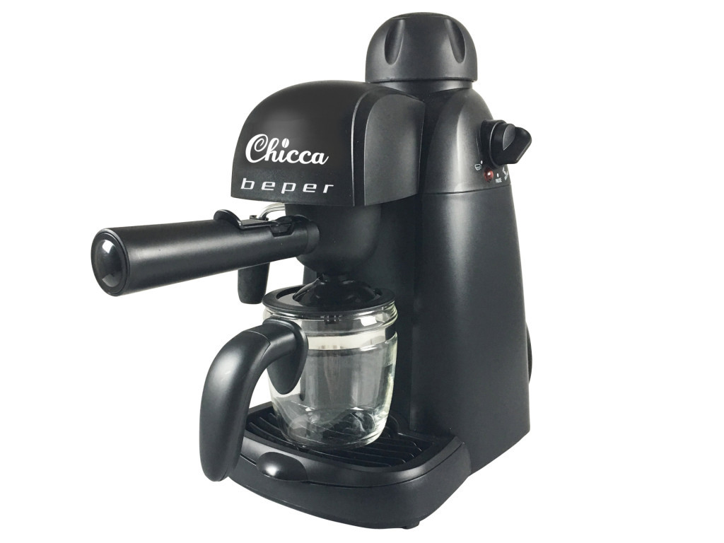 Beper BC.002 Espresszo kávéfőző 800W A „Chicca” kávéfőzőnek mércével ellátott hőálló kancsója és alumínium fűtőegysége van. Fúvókával szabályozható a kibocsátott gőz mennyisége, ezáltal ízletes cappucciono-t készíthet otthonában. Kávészűrő akár 4 adag kávé főzéséhez. Kivehető csepptálca a könnyű tisztítás érdekében. Vezérlőkarral, túlmelegedés és túlnyomás elleni védelemmel ellátott.