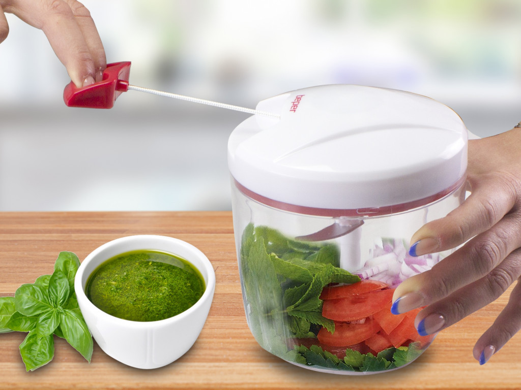 • Ideális a könnyebb aprításhoz, egyszerű és könnyen használható, csak húzza meg többször a húzófogantyút és a készülék megkezdi az aprítást.