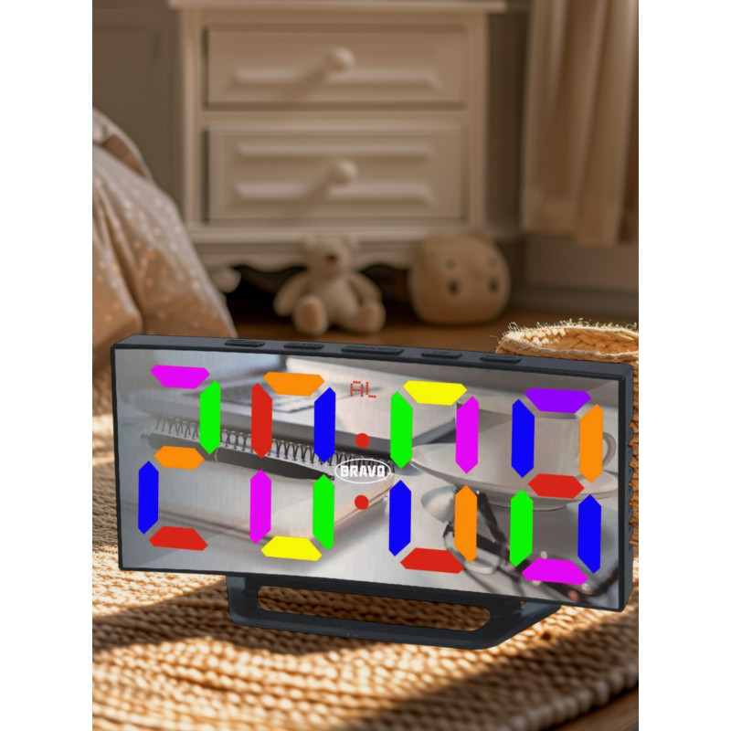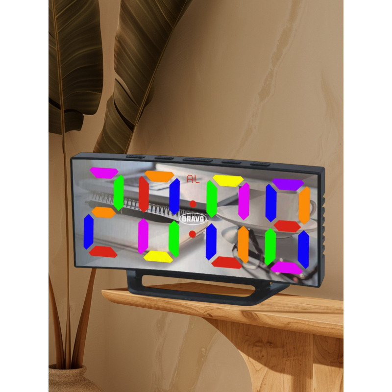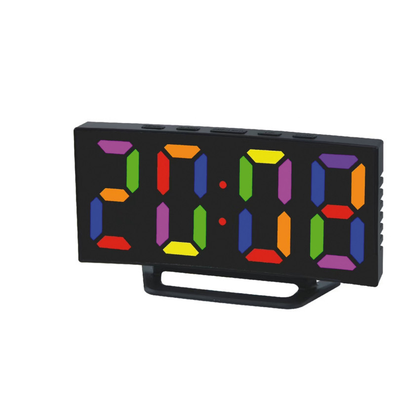 Bravo B-5189 Digitális ébresztőóra nagy méretű, többszínű kijelzővel - fekete színben