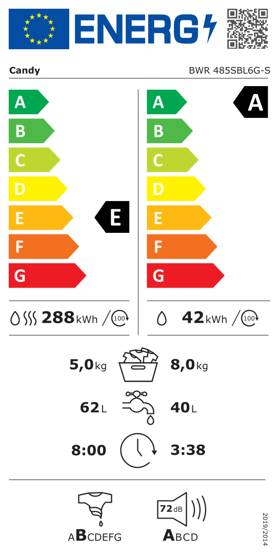 Ez a Candy mosó-szárítógép áttöri az új energiacímkék korlátait: a műszaki fejlesztéseknek köszönhetően az „A” energiaosztályhoz képest is 10%-kal hatékonyabb működésre képes. Ez legalább 55%-kal kevesebb energiafogyasztást jelent egy G osztályú készülékhez képest – így energiát és pénzt takaríthatsz meg, miközben a környezetet is véded. Egy újabb fontos lépés a fenntartható jövő felé – a Candy részéről.
