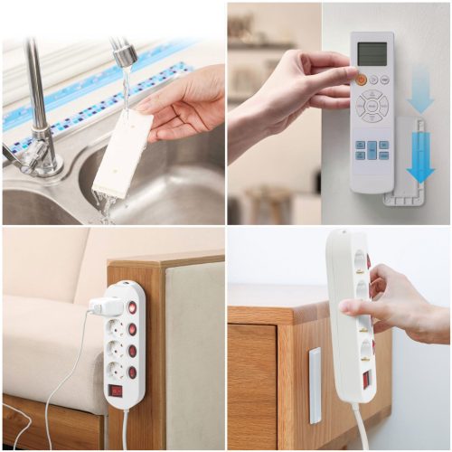 Univerzális, öntapadós tartókonzol, amely széleskörben alkalmazható a lakás, iroda bármely pontján. A tartó rész, erős öntapadós ragasztóval rögzíthető különböző felületekre (fém, fa, műanyag, kerámia, üveg), így nem szükséges fúrnia. Szükség esetén a speciális tapadófelületnek köszönhetően nyom nélkül eltávolítható és újrapozícionálható. Újrapozícionálás során mossa meg a tapadófóliát és várja meg míg megszárad. A konzol két részből áll, melyek sínrendszer segítségével egymásba csúsztathatóak, így a rögzített tárgy hordozhatósága biztosított marad. Kiválóan alkalmas hosszabbítók, elosztók, routerek, távirányítók, háztartási eszközök rögzítésére.