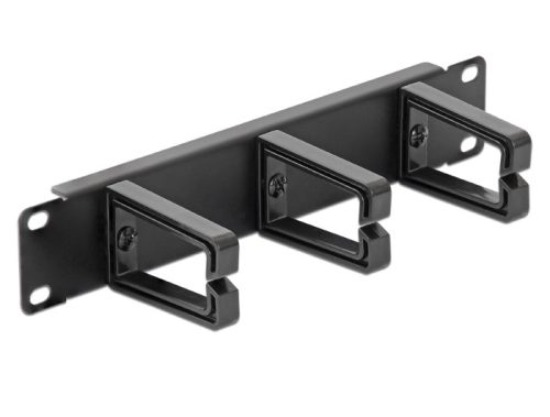 "Leírás Ez a Delock által gyártott kábelkezelő panel 10"-os rackbe szerelhető. A D-gyűrűs kampókkal a patchkábelek vízszintesen, tisztán vezethetők. Muszaki adatok - 10"-os rackekbe való szereléshez, 1U - Fém panel 3 kampóval - Szín: koromfekete RAL 9005 - Méretek (HxSxM): kb. 254 x 82 x 44,5 mm A csomag tartalma - 10"-os kábelrendező panel Csomag - Fehér doboz"