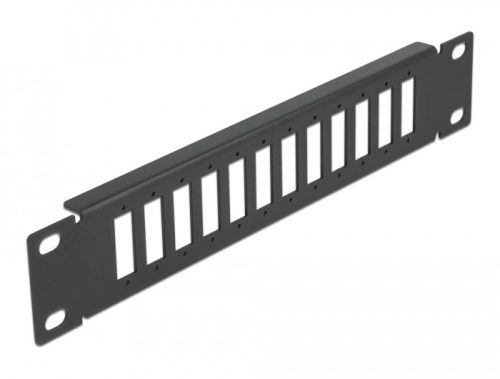Ez a Delock csatlakozó panel 10 állványba szerelhető. 12 rögzítési pontot biztosít SC Duplex vagy LC Quad adapterek egyedi csoportja számára.