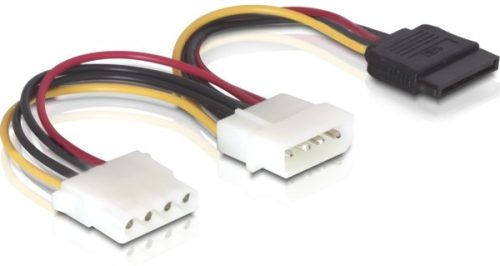 Delock 15 tűs SATA HDD 2 db 4 tűs Molex (apa/anya) hálózati kábel, 16,5 cm (DL-60103)