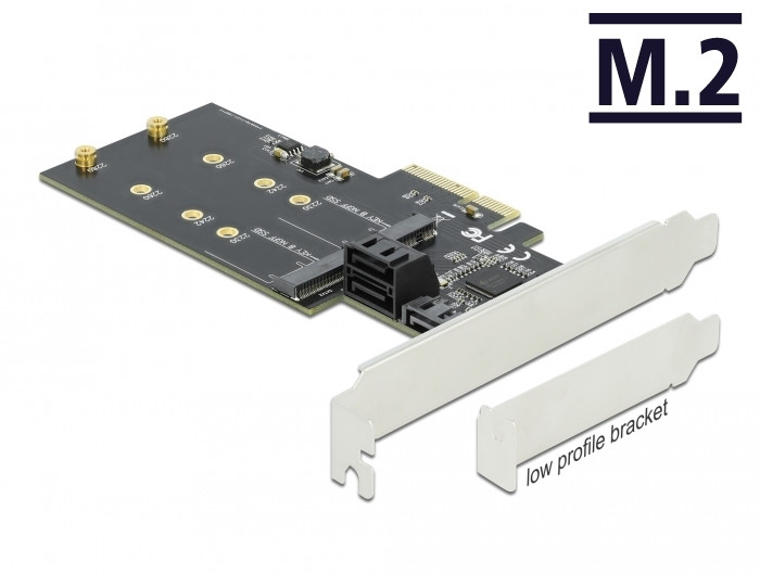 Delock 3 SATA port és 2 M.2 B kulcsos csatlakozó PCI Express x4 Kártya - alacsony profilú formaténye (DL-90499)