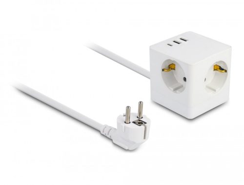 Delock 3 nyílásos csatlakozó kocka hosszabbító gyerekzárral és USB töltővel, valamint 1,5 m fehér (DL-11497)