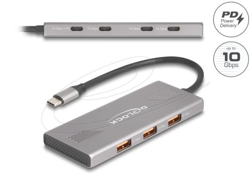 Delock 7 portos USB-elosztó, 10 Gbps, 4 db USB Type-C csatlakozóaljzattal és 3 db USB Type-A csatlakozóaljjal (DL-64313)