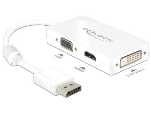 Delock Adapter Displayport 1.1-dugós csatlakozó > VGA / HDMI / DVI-csatlakozóhüvely passzív fehér (DL-62655)