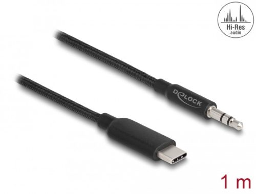 Delock Audio sztereó kábel USB Type-C dugós sztereó csatlakozóval 3,5 mm 3 tűs 1 m fekete (DL-85208)