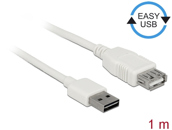 Delock Bővítő kábel EASY-USB 2.0-s A típusú csatlakozódugó > USB 2.0 A-típusú hüvely fehér 1 m (DL-85199)