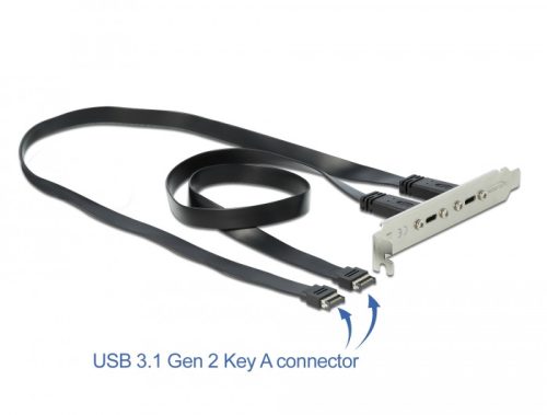 Ezzel a Delock csatlakozó aljzattal egy személyi számítógép kibővíthető két USB Type-C porttal. Mindegyik porton maximum 20 V / 3 A és adatforgalom esetén akár 10 Gbps adatátviteli sebesség is elérhető.