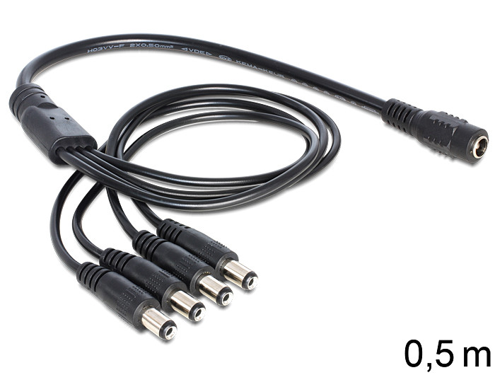 Ez a Delock DC elosztókábel négy alacsony feszültségigényű, DC csatlakozóval ellátott eszköz (pl. kamera, vagy LED világítósor) tápforráshoz való csatlakoztatására alkalmas.
