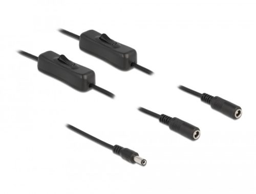Delock DC kábel 5,5 x 2,1 mm apa 2 db. DC anya kapcsolóval ellátott, 1 m (DL-86794)