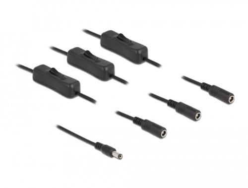 Delock DC kábel 5,5 x 2,1 mm apa 3 db. DC anya kapcsolóval ellátott, 1 m (DL-86795)