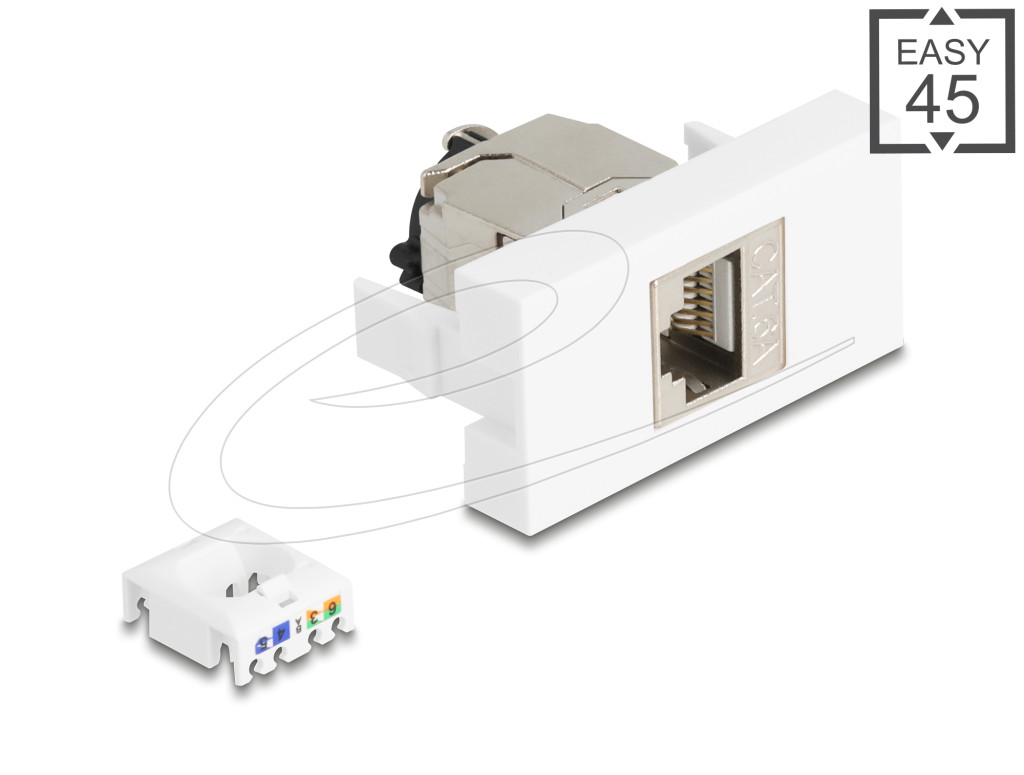 Ezt a Delock Easy 45 modult úgy tervezték, hogy hálózati kábelportot biztosítson , és csatlakoztatható a Delock Easy 45 modulrendszerhez. Az egyszerű bepattintható mechanizmus biztosítja, hogy a modul szilárdan a helyén legyen, és szükség esetén könnyen eltávolítható.