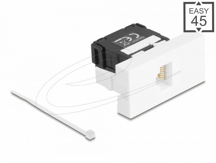 Delock Easy 45 modul RJ45 jack csatlakozó LSA Cat.6A 180 -os szerszámmentes fekete/fehér (DL-90879)