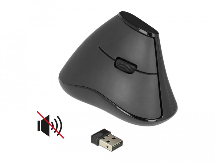 Ez a Delock vezeték nélküli, függőleges egér jobbkezes használatra készült, és egy kis méretű USB-vevőn keresztül csatlakozik a számítógéphez. Szállítás közben az egér alján lévő rekeszbe helyezhető. A 2,4 GHz-es vezeték nélküli technológia maximum 10 méteres működési tartományt biztosít. Ergonomikus kialakítása miatt a kéz álló helyzetben marad, és nem kell elfordítani. Így használható pl. ismétlődő terhelés miatti sérülés okozta fájdalom megelőzésére vagy kezdődő izomfájdalommal rendelkezők számára.