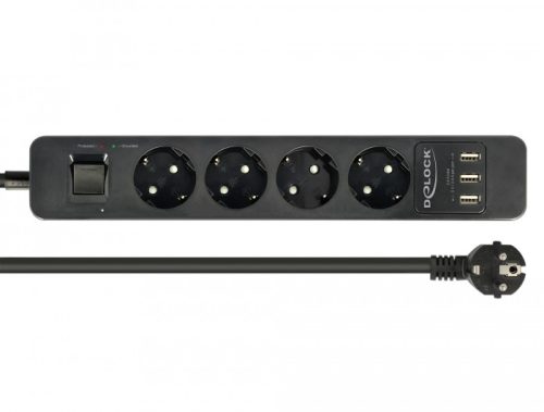 Delock Fekete színu négy foglalatú hosszabbítós konnektor USB töltovel és kisülés védelemmel (DL-11209)