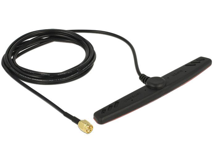 Delock GSM UMTS LTE antenna SMA dugó 2,5 dBi 2 m RG-174 mindenirányú ragasztós rögzítéssel (DL-89494)