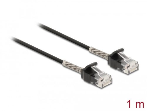 Delock Görbítés védelemmel ellátott kábel RJ45 apa - RJ45 apa Cat.6A, 1 m hosszú, fekete (DL-87016)