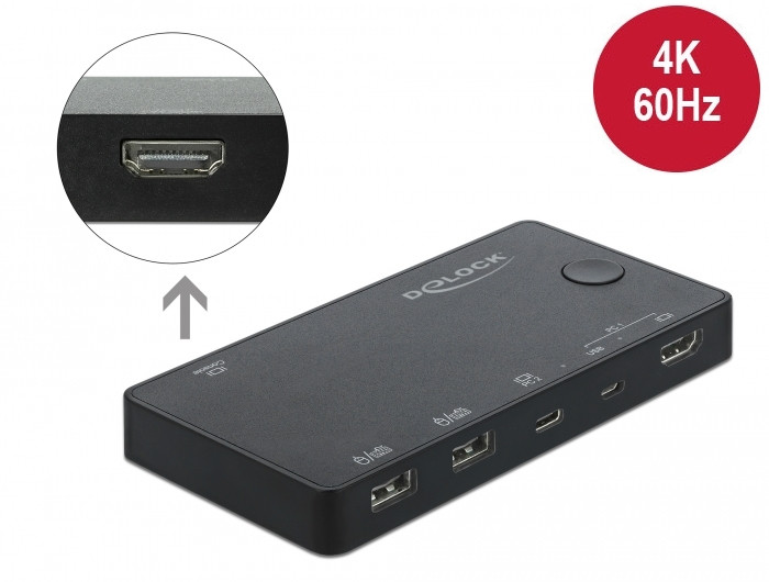 Delock HDMI / USB-C  KVM 4K 60 Hz kapcsoló USB 2.0 (DL-11477)
