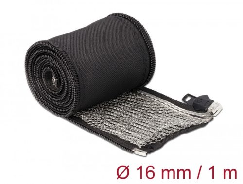 Delock Hőellenálló EMI Shielding fonott borítás zipzárral, 1 m x 16 mm méretű, fekete (DL-20845)