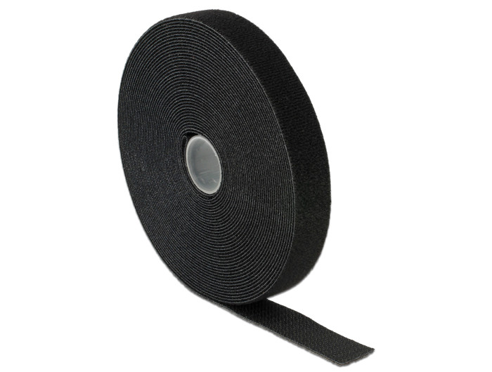 Delock Hurkolható rögzítok, 10 m x 20 mm (H x Sz) tekercs, fekete (DL-18716)