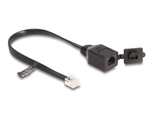 Delock Kábel RJ12 apa - RJ12 anya védő fedéllel 20 cm, fekete (DL-88009)