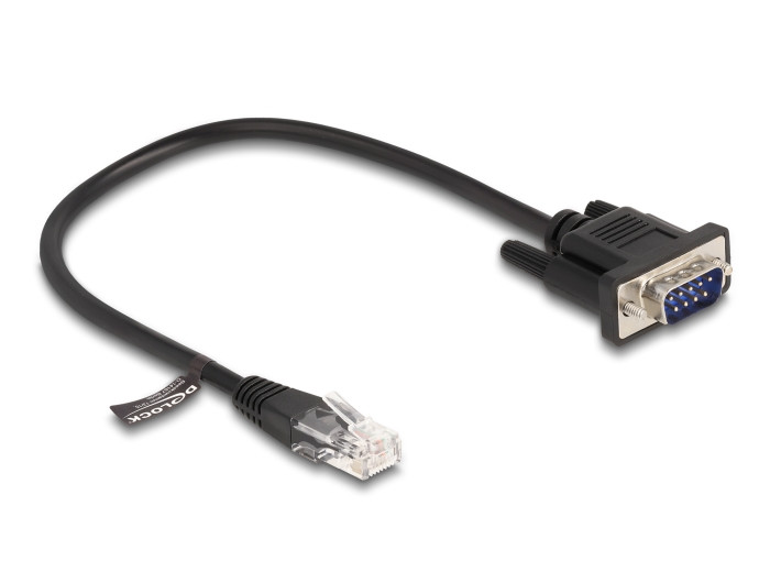 Delock Kábel RJ45 apa - soros RS-232 D-Sub 9 apa, 30 cm, fekete (DL-88008)