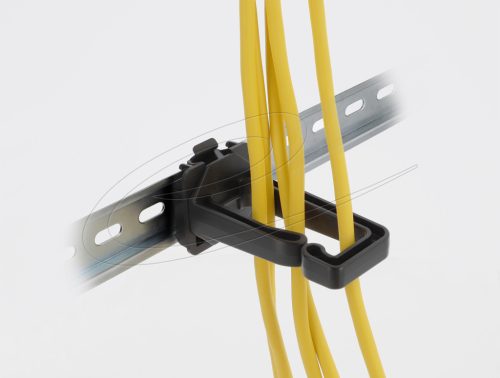 Delock Kábeltartó 70 x 24 mm méretű DIN sínhez kapcsoláshoz felszerelő lemezzel fekete (DL-90769)