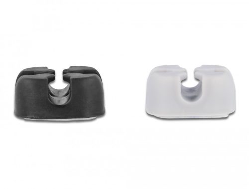 Ezek a Delock kábeltartók lehetővé teszik a szabadon álló kábelek tiszta és rendezett szétosztását. Öntapadósak és könnyen rögzíthetők bármilyen sima felületre például asztalra vagy falra. Kereszt alakú kábelpersely A kábeltartók kereszt alakú szerkezettel rendelkeznek, így a kábelek felülről, alulról vagy oldalról áthaladhatnak. Alkalmazható különböző kábelekhez A kábeltartók használhatók például televízió kábel tápkábel, USB kábel vagy hálózati kábelhez.