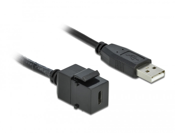 Delock Keystone modul, USB 2.0 C-csatlakozóhüvely > USB 2.0 A-csatlakozódugó, kábellel (DL-86378)
