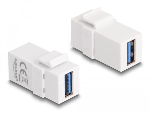 Delock Keystone modul, USB 3.0 A-csatlakozóhüvely > USB 3.0 A-csatlakozóhüvely fehér (1:1) (DL-87832)