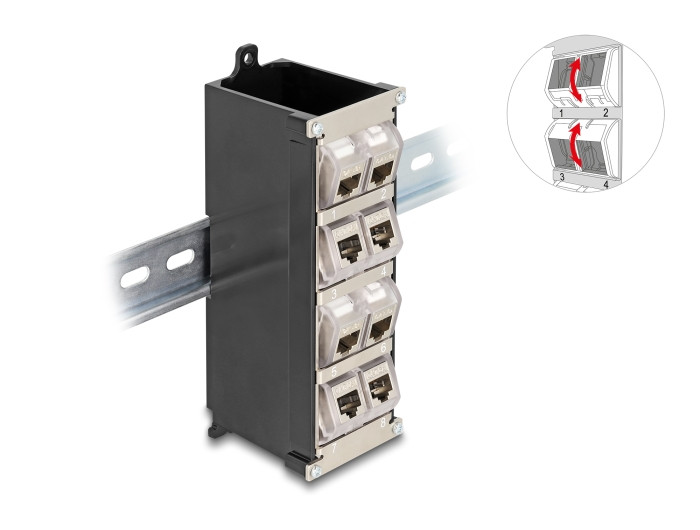Delock Keystone tartó 8 portos DIN sínhez vagy falra szereléshez dönthető (DL-67039)