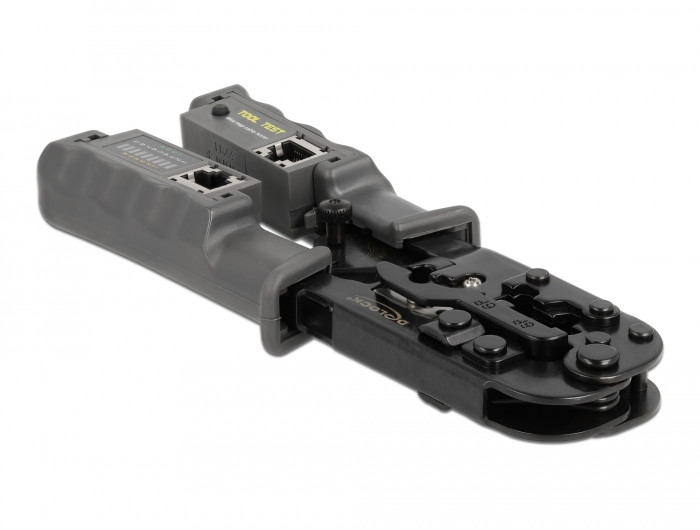 Delock Krimpelő eszköz csupaszítóval és hálózati teszterrel 8P (RJ45), 6P (RJ12 / 11) vagy 4P (RJ10) (DL-90510)