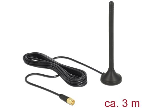 Delock LTE / GSM / UMTS antenna SMA-dugó 2,5 dBi irányítatlan, rögzített, mágneses talppal és csatla (DL-12419)