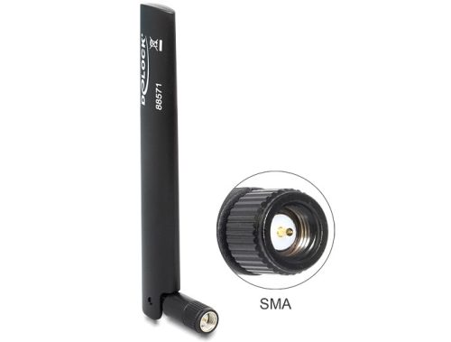 Delock LTE antenna SMA -0,8 ~ 3,0 dBi mindenirányú, flexibilis csatlakozóval, fekete (DL-88571)