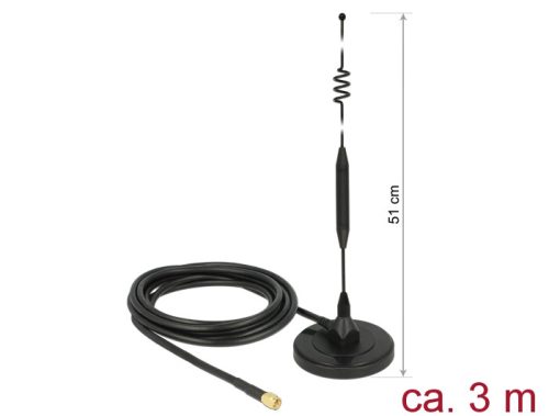 Delock LTE antenna SMA-dugó 6 dBi irányítatlan, rögzített, mágneses talppal és csatlakozókábellel (R (DL-12429)