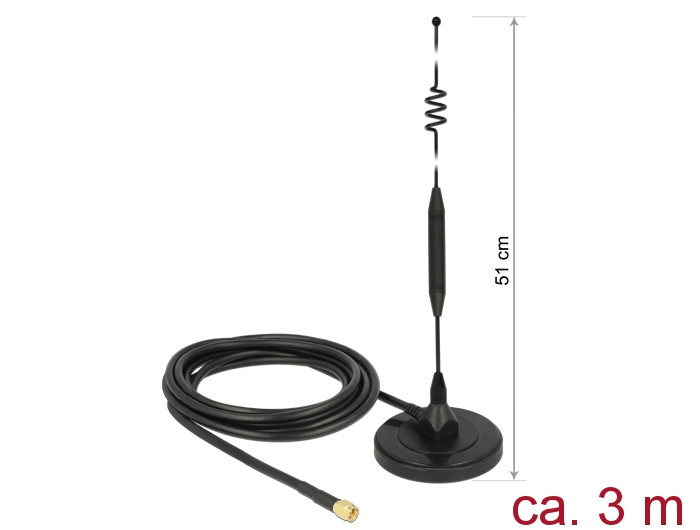 Antenna hosszúsága a mágneses talppal együtt: kb. 51,0 cm