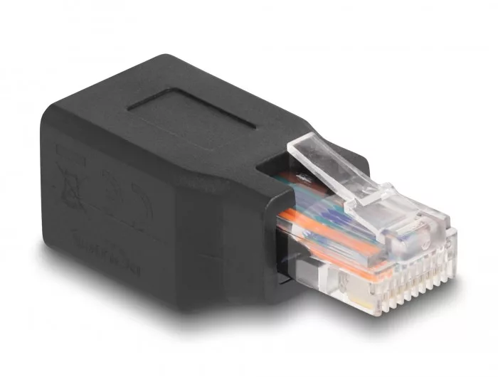 Leírás Ez a Delock RJ45/RJ48/RJ50 adapter kompatibilis RJ csatlakozókkal, úgy, mint RJ12, RJ11, RJ10 stb. A megfelelő RJ dugaszok csatlakozásai pontosan illeszkednek az RJ50/RJ45/RJ48 adapterbe. Az adapter alkalmas port védőnek és különböző vonalkód leolvasók és megszakítatlan tápellátások esetén. Műszaki adatok Csatlakozó: 1 x RJ45/RJ48/RJ50 dugó 10P/10C 1 x RJ45/RJ48/RJ50 hüvely 10P/10C Alkalmas RJ csatlakozókhoz 1:1 csatlakoztatás Árnyékolatlan (U/UTP) Arany bevonatú érintkezők Burkolat anyaga: PVC Szín: fekete Méretek (HxSzxM): kb. 44,5 x 18,5 x 16,5 mm Rendszerkövetelmények Egy szabad RJ45/RJ48 vagy RJ50 csatlakozó A csomag tartalma Hálózati adapter Csomag Poly bag