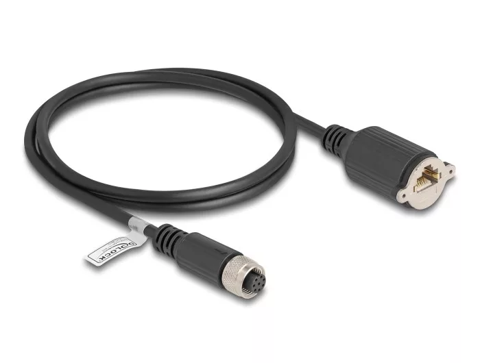 Delock M12 kábel A-kódú 8 tűs anya - RJ45 anya Cat.5e FTP installálásához 1 m, fekete (DL-80433)