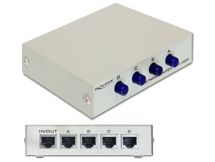 Delock Manuális, kétirányú RJ45-kapcsoló 10/100 Mbps 4 porttal (DL-87588)
