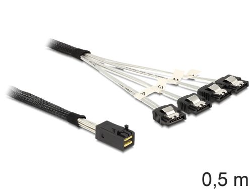 Delock Mini SAS HD x 4 SFF 8643 apa > 4 x SATA 7 Pin anya kábel, 0,5 m (DL-83392)