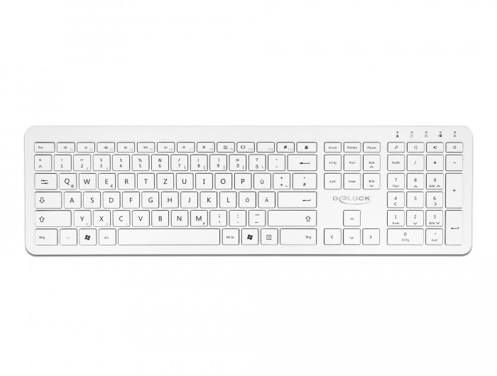 Delock NÉMET 2,4 GHz-es vezetéknélküli USB klaviatúra fehér (lapos) (DL-12014)
