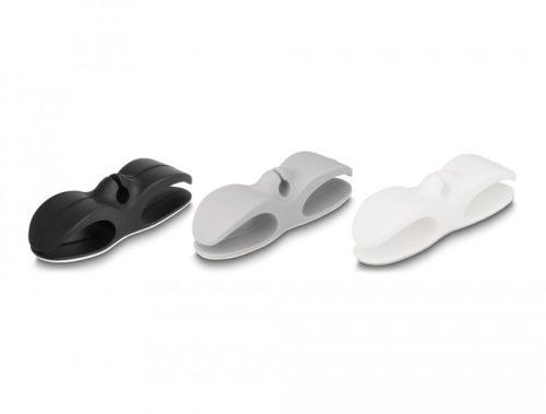 Ezek a Delock kábeltartók lehetővé teszik a szabadon álló kábelek tiszta és rendezett szétosztását. Öntapadósak és könnyen hozzátapaszthatók bármilyen sima felülethez, úgy, mint asztalhoz, falhoz, és le is vehető onnan bármilyen nyom hátrahagyása nélkül. A kábelek két oldalról és felül is átbújtathatók. Tökéletesen rendezett és rugalmas A kábeltartók alkalmasak minden típusú kábelhez, például hálózati kábelekhez, USB kábelekhez, HDMI kábelekhez és töltő kábelekhez is. Akár az irodában vagy otthon, a kábelek mindig rendezettek lesznek, és ezáltal tiszta átlátható benyomást adnak. A kábeltartók tökéletes megoldást nyújtanak a dolgok rendszerezésére, és megelőzik a kábelek összecsomósodását. -Öntapadós (3M szalag) -Mennyiség: 3 darab / politasak 1 x fekete 1 x fehér 1 x szürke -8 és 15 mm átmérőjű kábelekhez -Anyaga: szilikon -Méretek (HxSzxM): kb. 103 x 30 x 28 mm -3 x kábel tartó